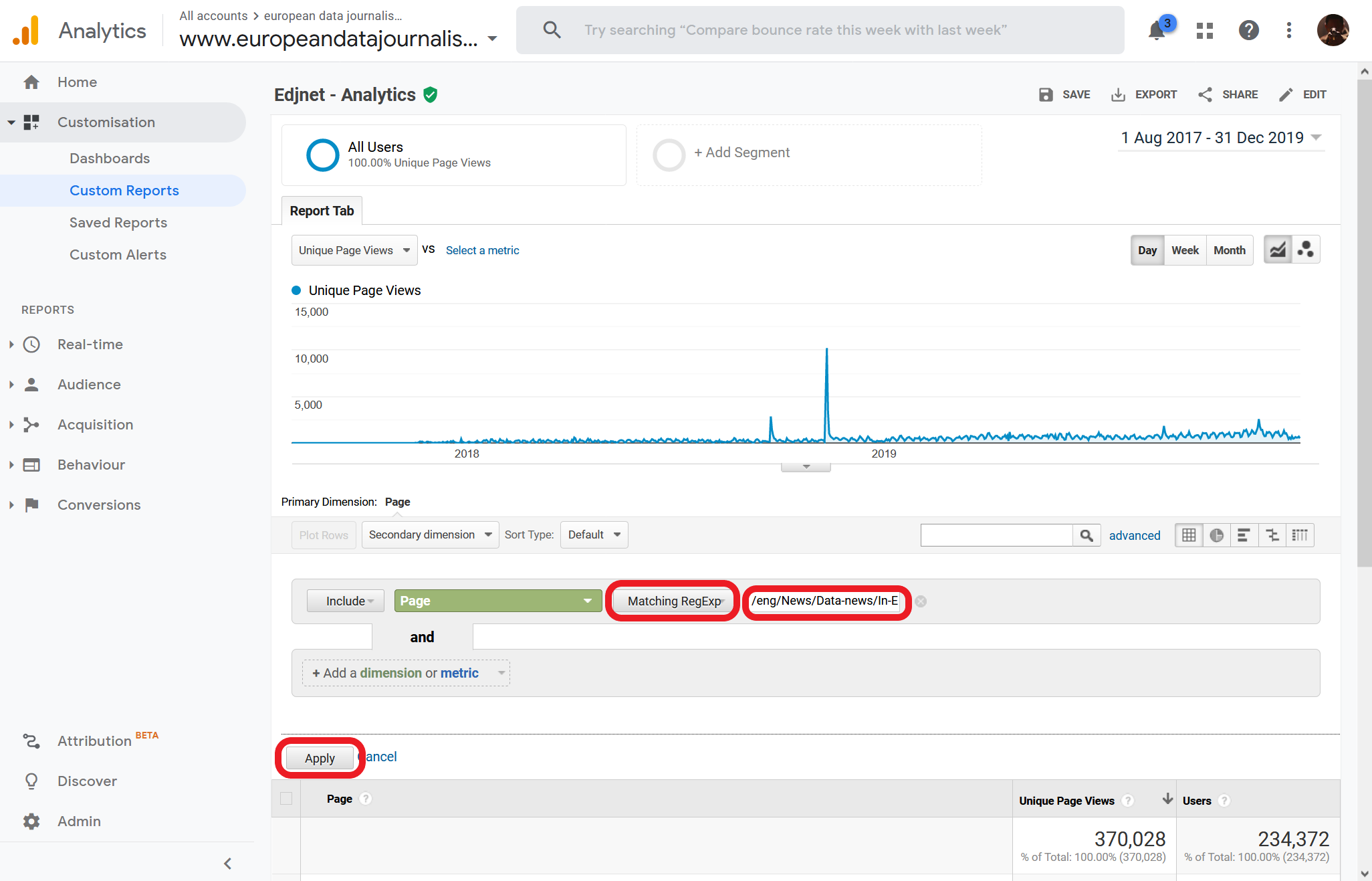 Choose the right time interval and press "Apply"